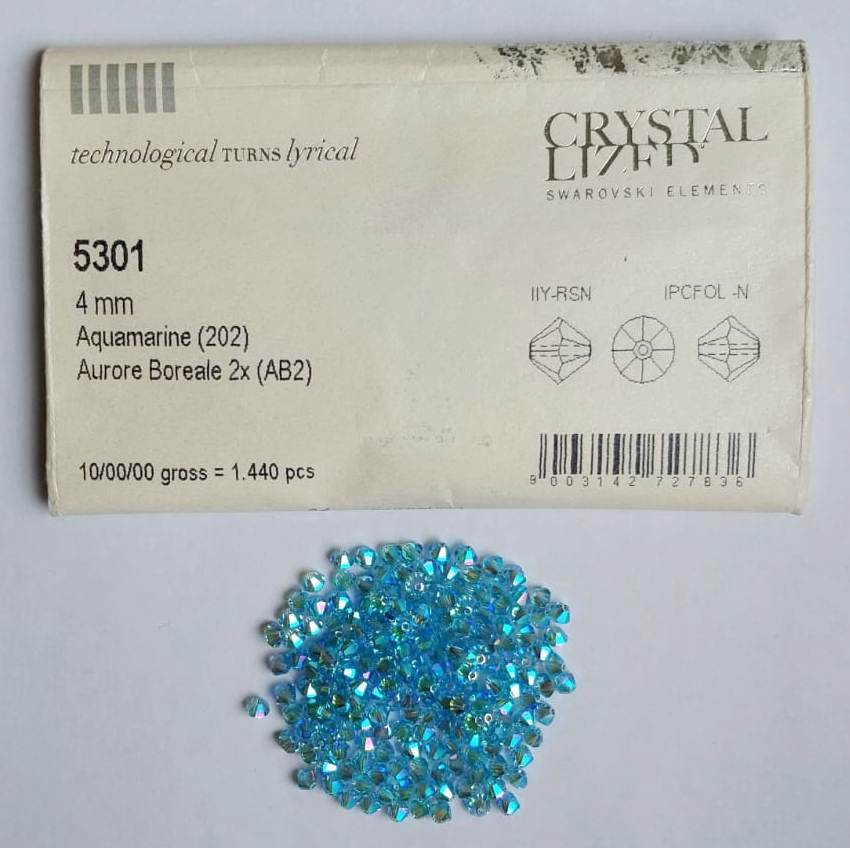 Swarovski bicone Aquamarine AB 2x 10 шт (4 мм)