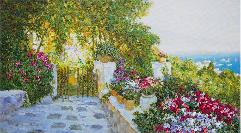 Количество цветов: 21-мулине, 11-шелковых лент