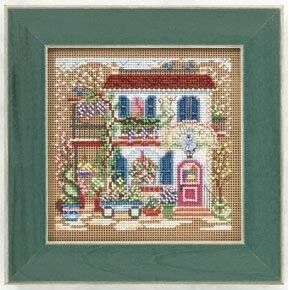 Перфорированная бумага, бисер Mill Hill, пуговица, хлопковое мулине и схема.