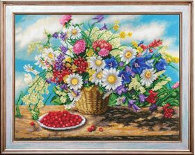 В набор входит: канва Aida №14 Zweigart (без нанесенного рисунка), бисер (Чехия), бисерная игла, схема для вышивания, инструкция по вышиванию. Полная зашивка бисером.Кол-во цветов: 70.