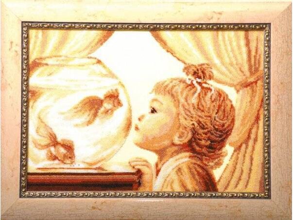 В набор входит: чешский бисер,жемчуг(Чехия),канва аида №14,схема для вышивания,игла бисерная, инструкция.