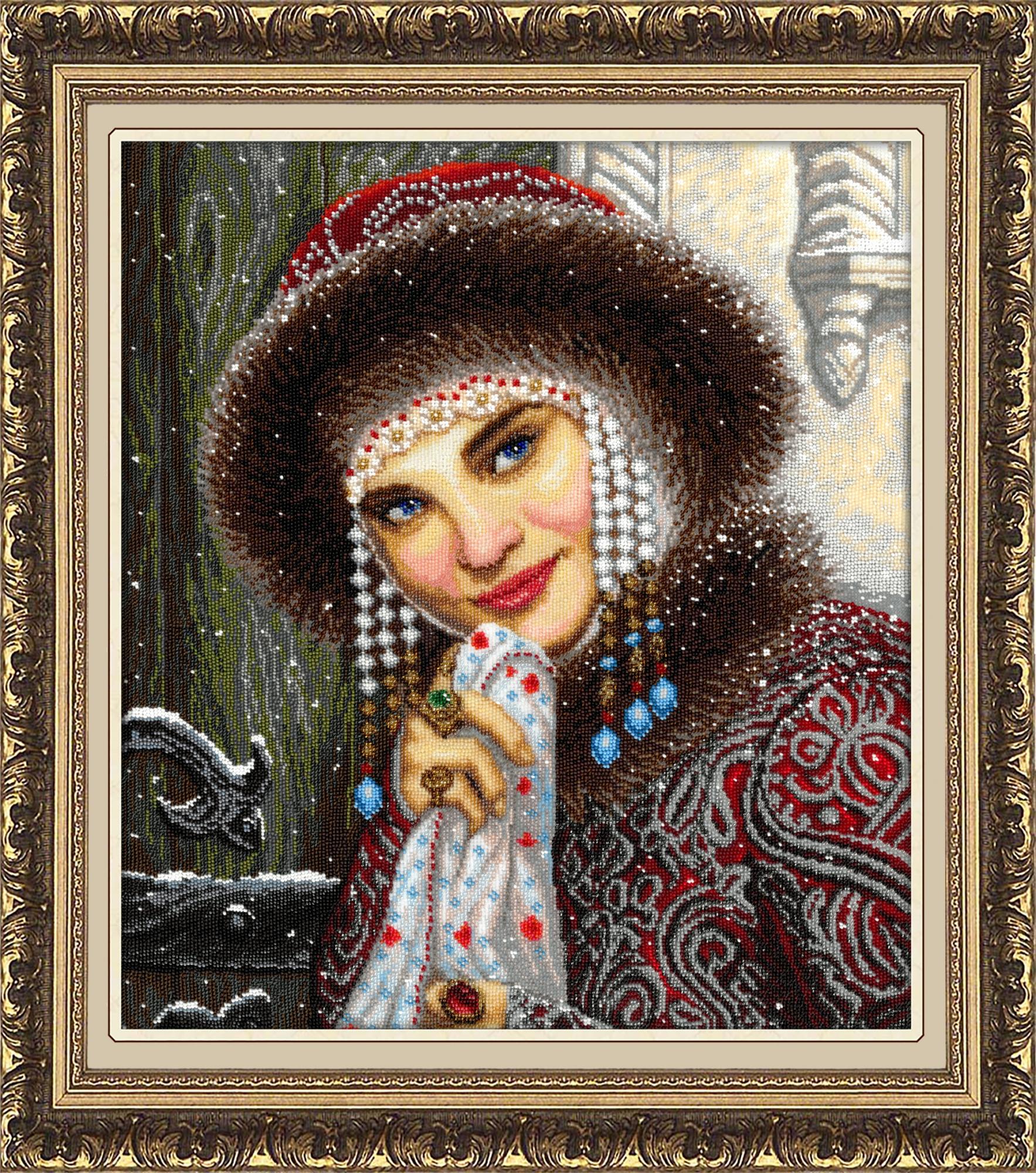 В набор входит: канва № 14 Aida Gamma без нанесённого рисунка (Россия), бисер 73 цв. (Чехия), игла для бисера, крупная чёрно-белая символьная схема для вышивания, QR-код для скачивания электронной схемы в формате SAGA. Полная зашивка бисером.