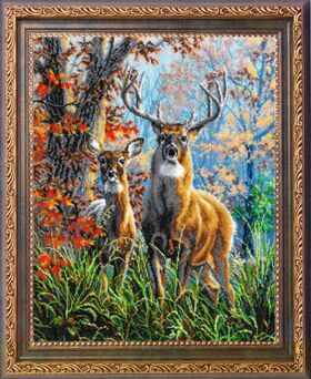 В наборе: канва Aida №14 Zweigart (без нанесенного рисунка), бисер 61 цв. (Чехия), бисерная игла, схема для вышивания, инструкция по вышиванию. Полная зашивка бисером.
