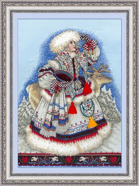 В наборе: Канва № 16 Aida Zweigart светло-голубая (без нанесенного рисунка), нитки мулине DMC (Франция) 35 цв., Gamma (Россия), мулине Cloud для начёсывания и создания объёма деталейвышивки, ювелирный бисер, крупный бисер, разноцветные кисточки для декора, золотистая декоративная пуговичка, игла, схема для вышивания. Частичная зашивка нитками и бисером.