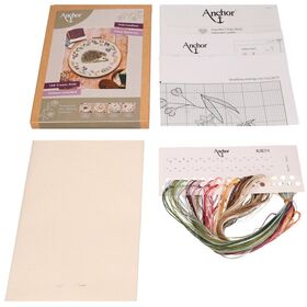 В набор входит: канва Aida 16 цвет бежевый, схема черно-белая, нитки Anchor 100% лен, игла, инструкция.