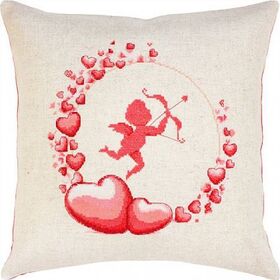 В наборе: канва Tukestan “Zweigart”, мулине Анкор 14 цв., черно-белая схема, игла, ткань для оформления подушки, застежка "молния" по цвету задника, инструкция.