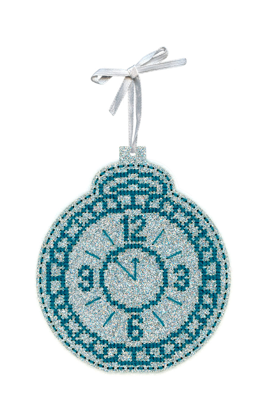 В наборе - заготовка с перфорацией из фетра серебряного и белого цв., нитки мулине ПНК им.Кирова 1 цв., лента - 1 цвет, игла, схема и руководство по вышиванию.