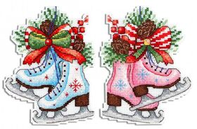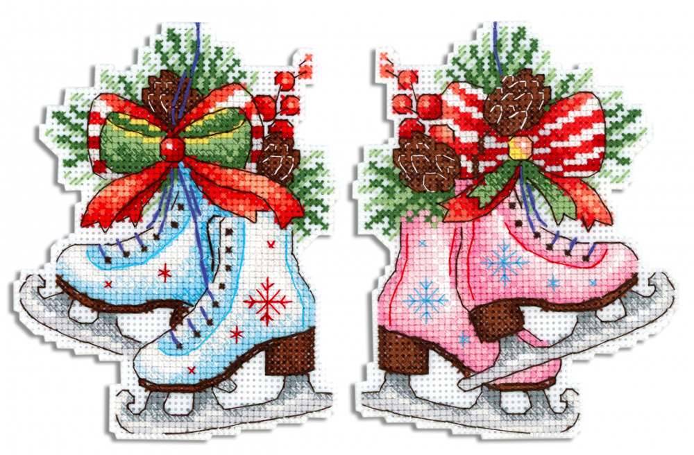 В наборе - канва пластиковая Аида №14, хлопковое мулине ПНК им. Кирова 20 цв., игла, схема для четырех сюжетов и руководство по вышиванию.