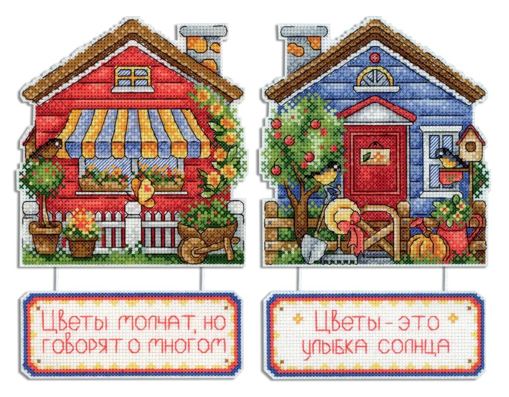 В наборе - пластиковая канва №14, нитки мулине 23 цвета, игла, символьная схема и руководство по вышиванию.