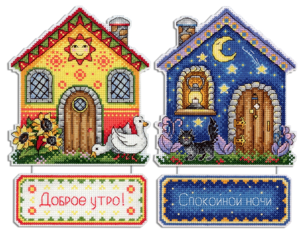 В наборе - Пластиковая канва 14, нитки мулине ПНК им. Кирова 25 цветов, черно-белая схема, игла, инструкция.