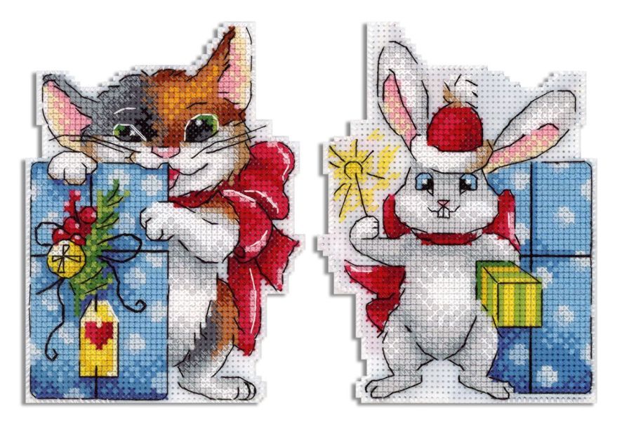 В наборе - канва пластиковая 14 каунта, нитки мулине 24 цветов ПНК им.Кирова, разобранные на органайзере, игла, схема и руководство по вышиванию.