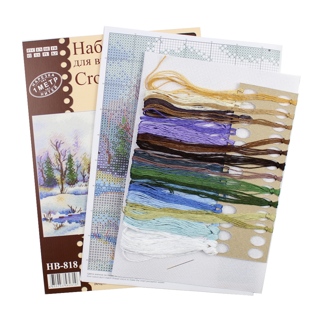 В наборе - канва Аида № 16, нитки мулине Гамма 24 цв., разобранные на органайзере, игла, цвето-символьная схема и руководство по вышиванию.