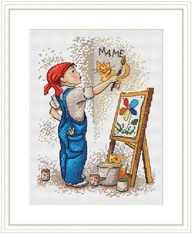 В наборе - канва Аида №14, нитки мулине 23 цветов ПНК им.Кирова, игла, чёрно-белая схема и руководство по вышиванию (на обороте обложки).