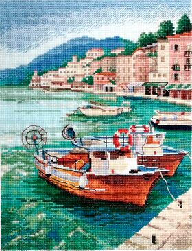 канва Aida 16 ct молочная, мулине Finca 28 цв., игла, инструкция и игла.