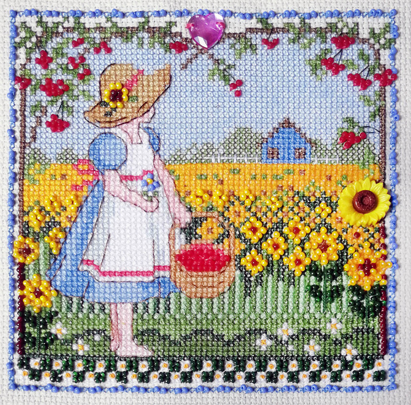 канва Aida 14 ct бежевая, мулине Finca 15 цв., пуговицы, бисер, игла, инструкция, схема черно-белая.
