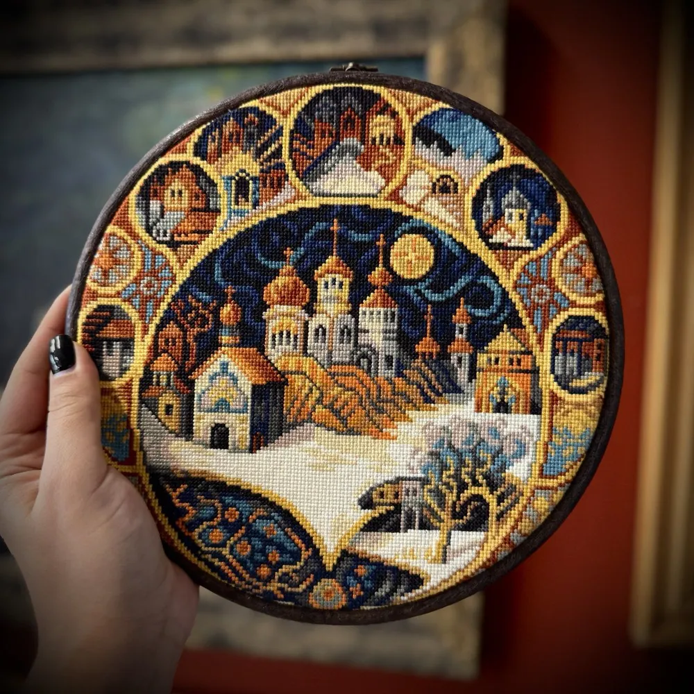 В наборе - аида 16 белая, хлопковое мулине Luca-S 19 цв., бумажная цветосимвольная схема + ссылка на схему в формате .pdf и Saga, игла, инструкция. Вышивка выполняется полностью в технике счетный крест без бэкстича и других видов стежков. Пяльца в комплект не входят!