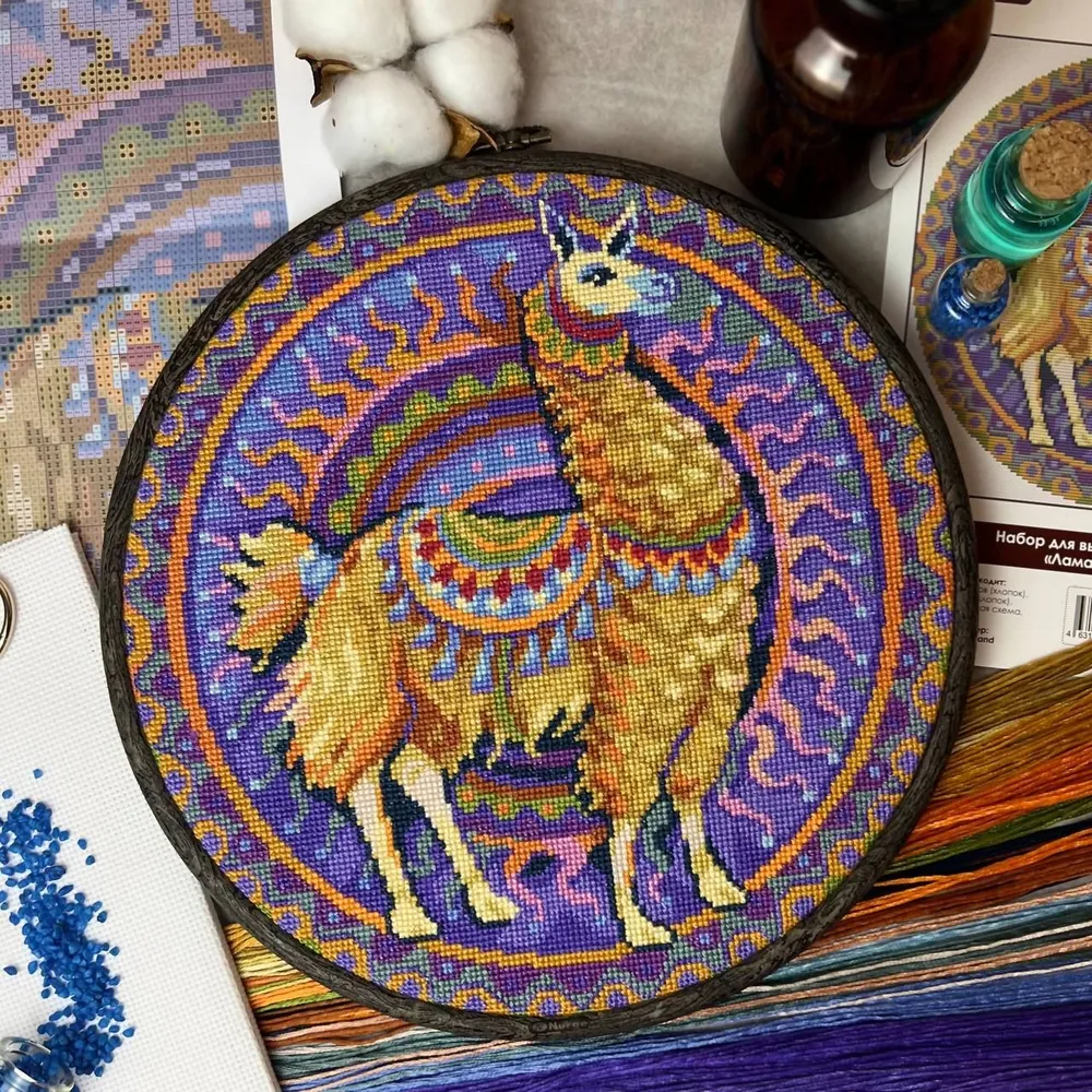 В наборе - аида 16 белая, хлопковое мулине Luca-S 20 цв., бумажная цветосимвольная схема + ссылка на схему в формате .pdf и Saga, игла, инструкция. Вышивка выполняется полностью в технике счетный крест без бэкстича и других видов стежков. Пяльца в комплект не входят!