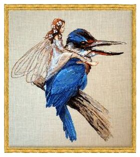 льняная ткань, мулине DMC, металлизированные нити, схема.