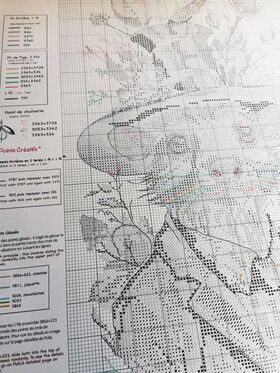–Сетка: черно-белая схема символов, цветные линии, 2 легко читаемых формата А2 (42×59,4 см), 1 для сетки + 1 для отделки