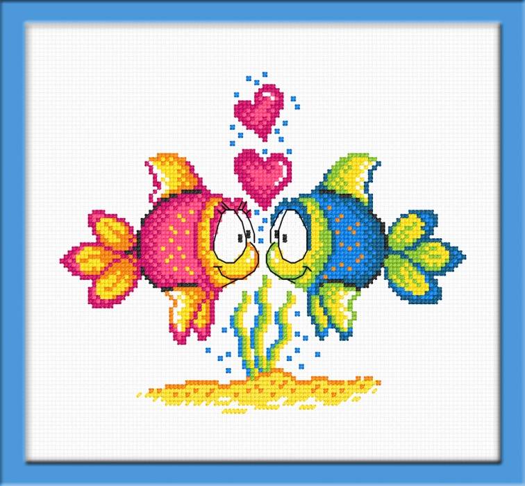 В наборе - аида 14 белая, хлопковое мулине, цветная символьная схема, игла. Вышивается в 3 нити. 9 цветов.