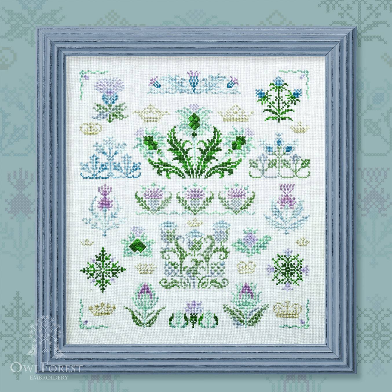 В наборе: основа равномерного переплетения Zweigart Belfast, 32 ct (100% лён), хлопковое мулине ручного окрашиваниямулине DMC ручного окрашивания (8 цв.), Нить для вышивания Kreinik металлик, цветная символьная схема, Дополнительная цветная схема для вышивания фрагментами, игла для вышивания № 26 Prym, магнитный держатель схемы и иглы.