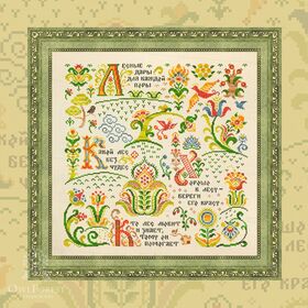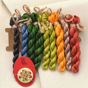 В наборе: основа равномерного переплетения ?belh?r Etamin, 25 ct (100% хлопок), хлопковое мулине DMC ручного окрашивания (7 цв.), цветная символьная схема, игла для вышивания №26 Prym, магнитный держатель схемы и иглы.