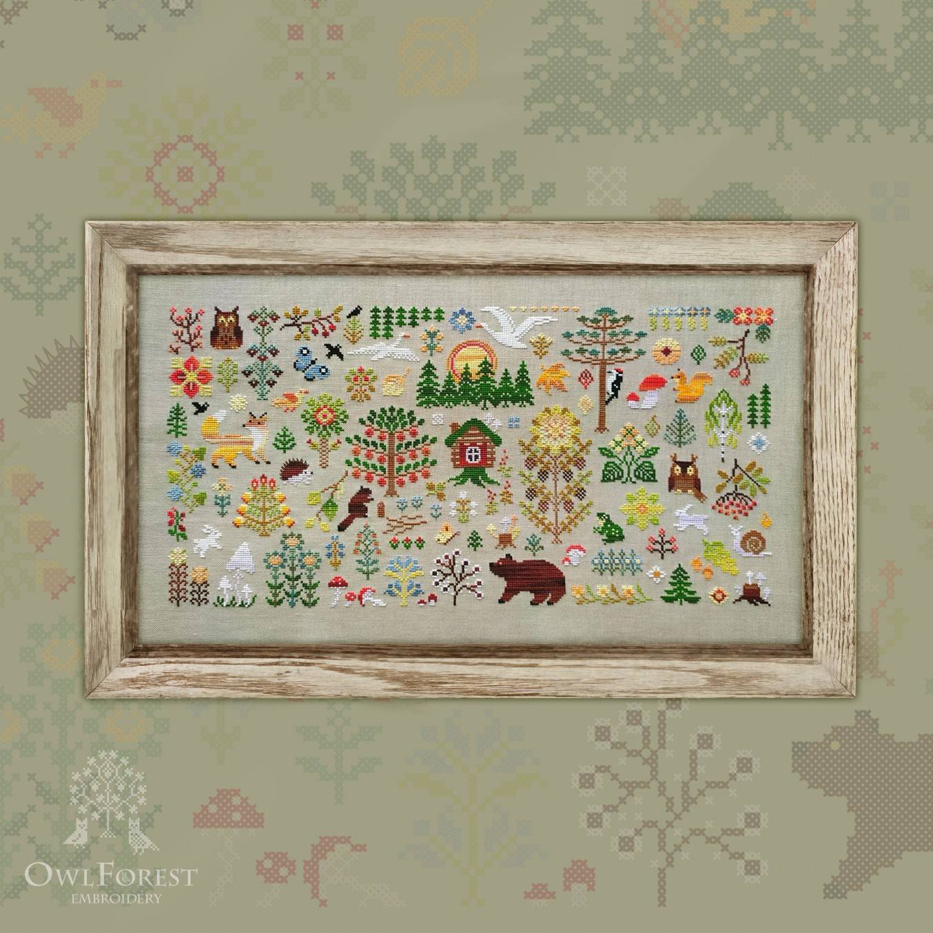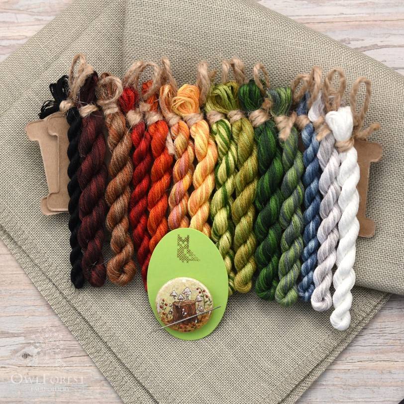 В наборе: основа равномерного переплетения Zweigart Belfast, 32 ct (100% лён), хлопковое мулине ручного окрашиваниямулине DMC ручного окрашивания (14 цв.), цветная символьная схема, игла для вышивания № 26 Prym, магнитный держатель схемы и иглы.