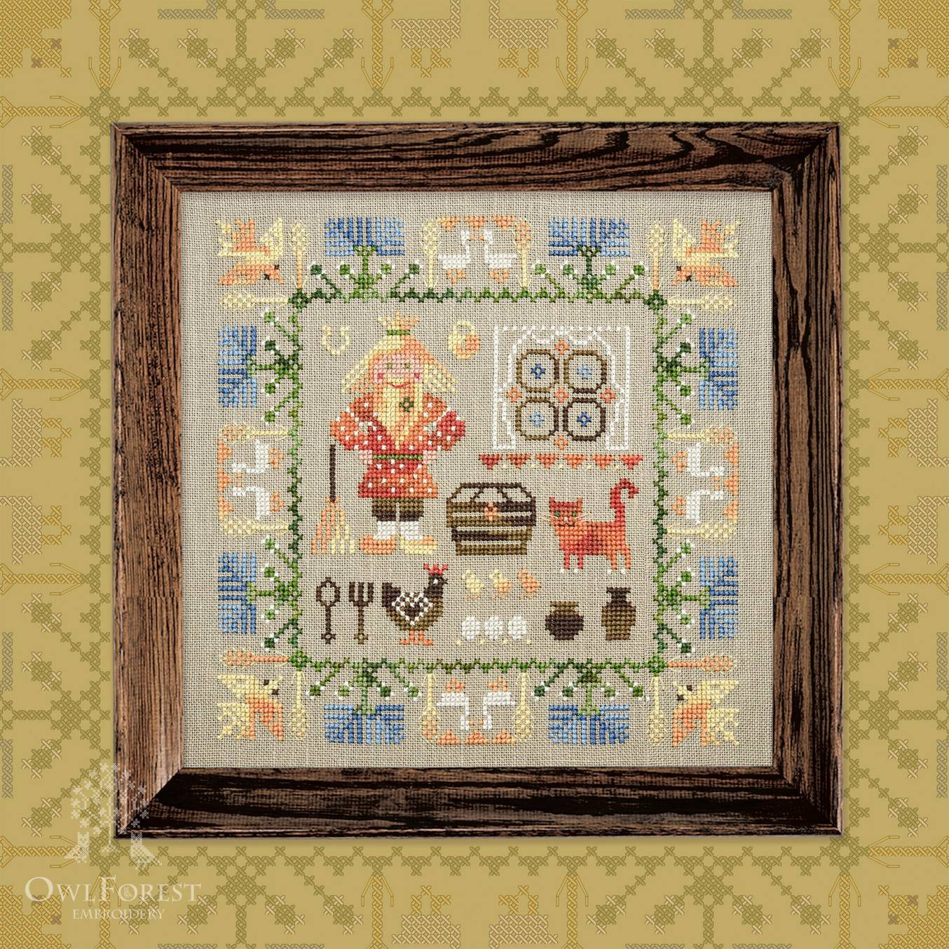 В наборе: основа равномерного переплетения Zweigart Belfast, 32 ct (100% лён), хлопковое мулине ручного окрашиваниямулине DMC ручного окрашивания (7 цв.), цветная символьная схема, игла для вышивания № 26 Prym, магнитный держатель схемы и иглы.