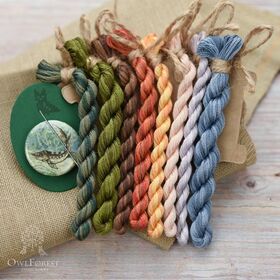 В наборе: основа равномерного переплетения Zweigart Belfast, 32 ct (100% лён), хлопковое мулине ручного окрашиваниямулине DMC ручного окрашивания (8 цв.), цветная символьная схема, Дополнительная цветная схема для вышивания фрагментами, игла для вышивания № 26 Prym, магнитный держатель схемы и иглы.
