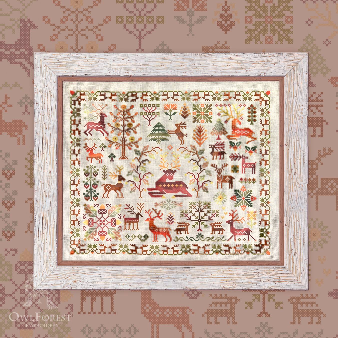 В наборе: основа равномерного переплетения Zweigart Belfast, 32 ct (100% лён), хлопковое мулине ручного окрашиваниямулине DMC ручного окрашивания (8 цв.), цветная символьная схема, Дополнительная цветная схема для вышивания фрагментами, игла для вышивания № 26 Prym, магнитный держатель схемы и иглы.