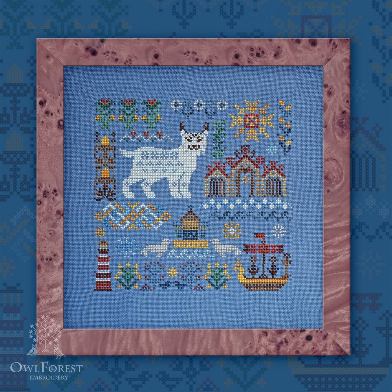 В наборе: основа равномерного переплетения Zweigart Murano, 32 ct, 52% хлопок, 48% вискоза, хлопковое мулине ручного окрашиваниямулине DMC ручного окрашивания (8 цв.), цветная символьная схема, Дополнительная цветная схема для вышивания фрагментами, игла для вышивания № 26 Prym, магнитный держатель схемы и иглы.