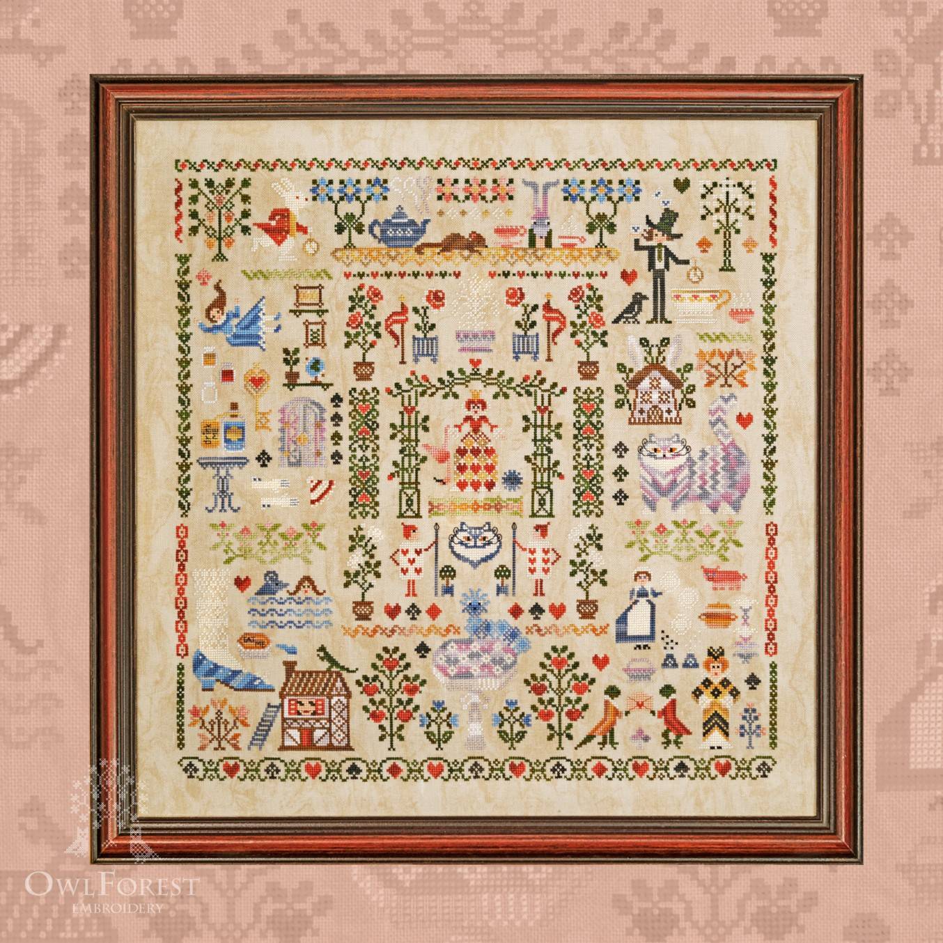В наборе: основа равномерного переплетения Zweigart Belfast 32 ct (100% лён), хлопковое мулине DMC ручного окрашивания (14 цв.), цветная символьная схема, дополнительная цветная схема для вышивания фрагментами, игла для вышивания №26 Prym, магнитный держатель схемы и иглы.