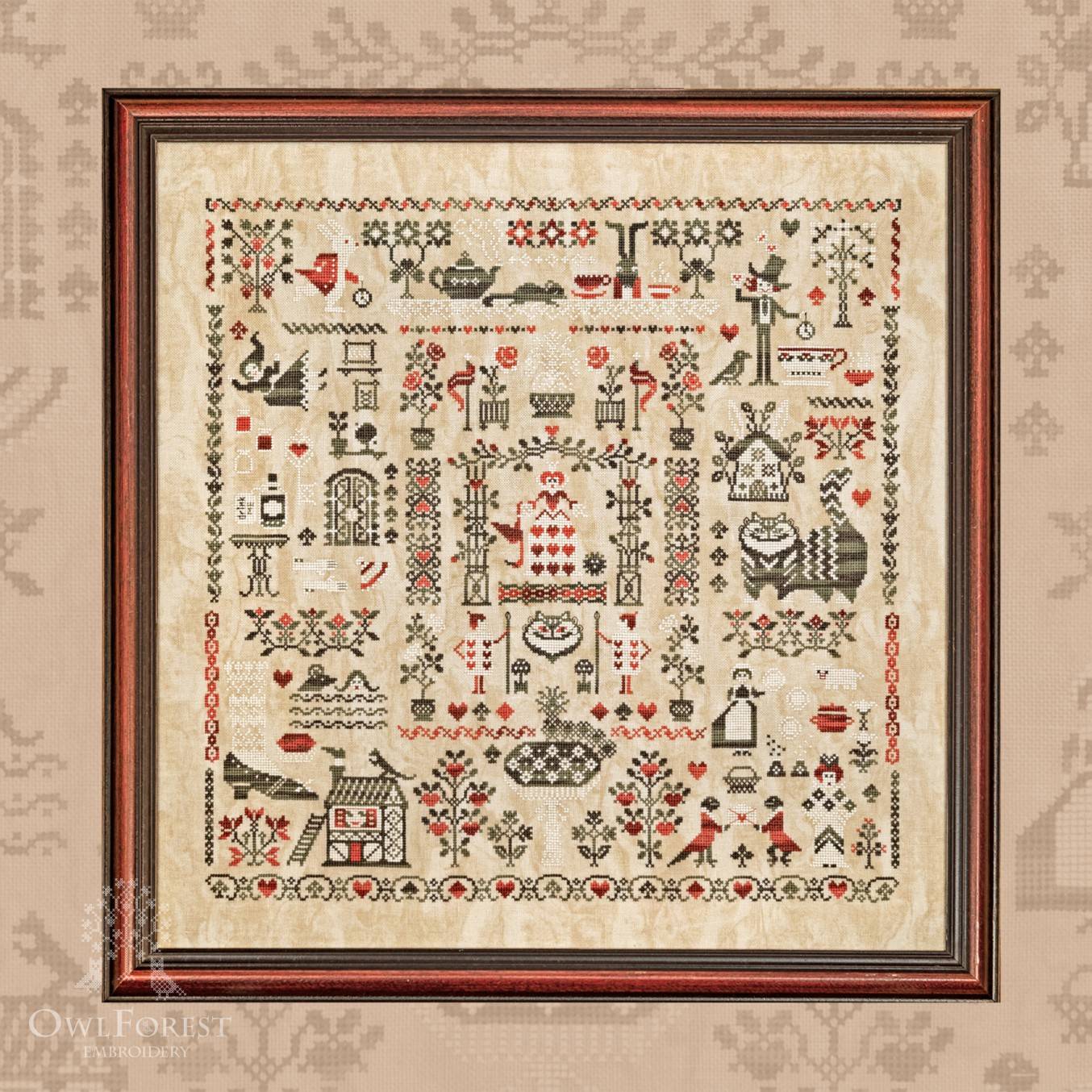 В наборе: основа равномерного переплетения Zweigart Belfast 32 ct (100% лён), хлопковое мулине DMC ручного окрашивания (3 цв.), цветная символьная схема, дополнительная цветная схема для вышивания фрагментами, игла для вышивания №26 Prym, магнитный держатель схемы и иглы.