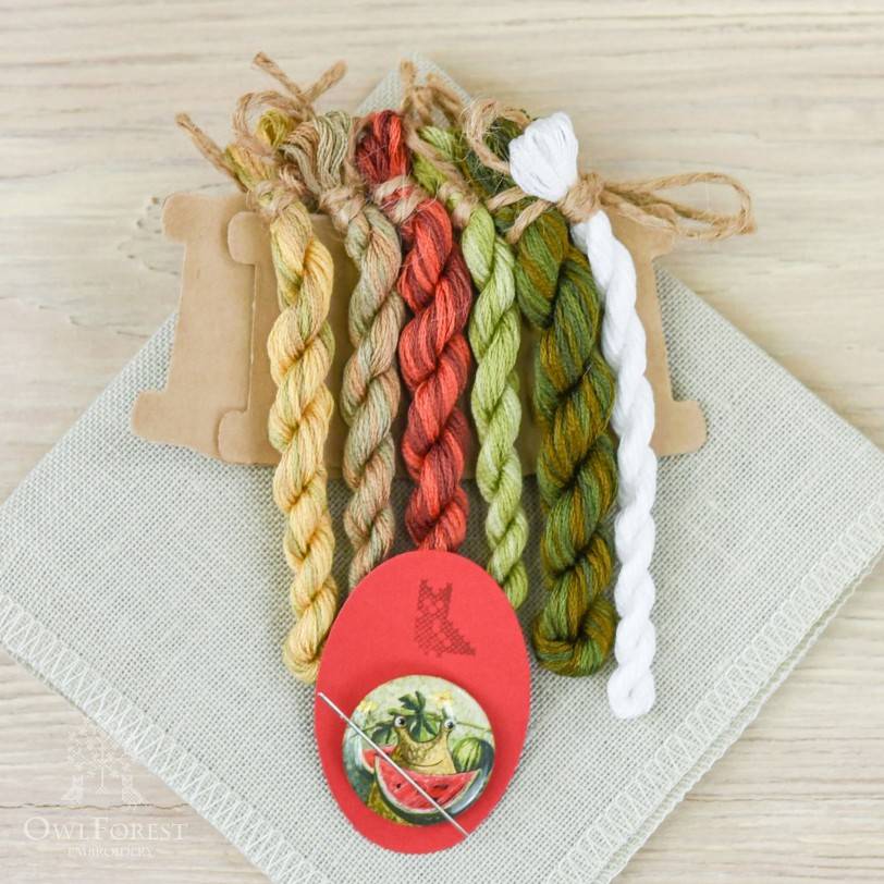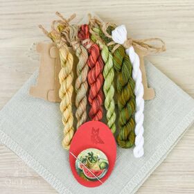 В наборе: основа равномерного переплетения Zweigart Belfast 32 ct (100% лён), хлопковое мулине DMC ручного окрашивания (6 цв.), цветная, чёрно-белая схема, игла для вышивания №26 Prym, магнитный держатель схемы и иглы.