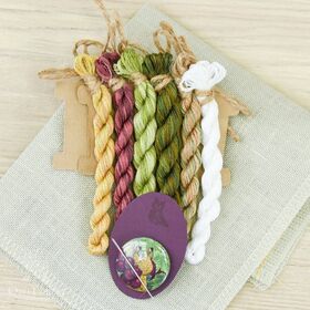 В наборе: основа равномерного переплетения Zweigart Belfast 32 ct (100% лён), хлопковое мулине DMC ручного окрашивания (6 цв.), цветная, чёрно-белая схема, игла для вышивания №26 Prym, магнитный держатель схемы и иглы.