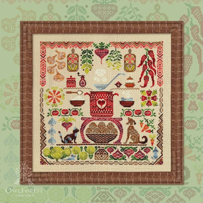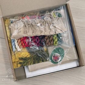 В наборе: основа равномерного переплетения Zweigart Belfast 32 ct (100% лён), хлопковое мулине DMC ручного окрашивания (11 цв.), цветная символьная схема, дополнительная цветная схема для вышивания фрагментами, игла для вышивания №26 Prym, магнитный держатель схемы и иглы.