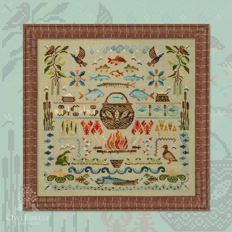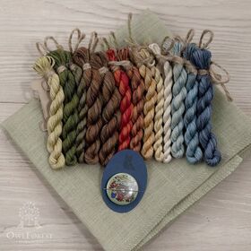 В наборе: основа равномерного переплетения Zweigart Belfast 32 ct (100% лён), хлопковое мулине DMC ручного окрашивания (12 цв.), цветная символьная схема, дополнительная цветная схема для вышивания фрагментами, игла для вышивания №26 Prym, магнитный держатель схемы и иглы.