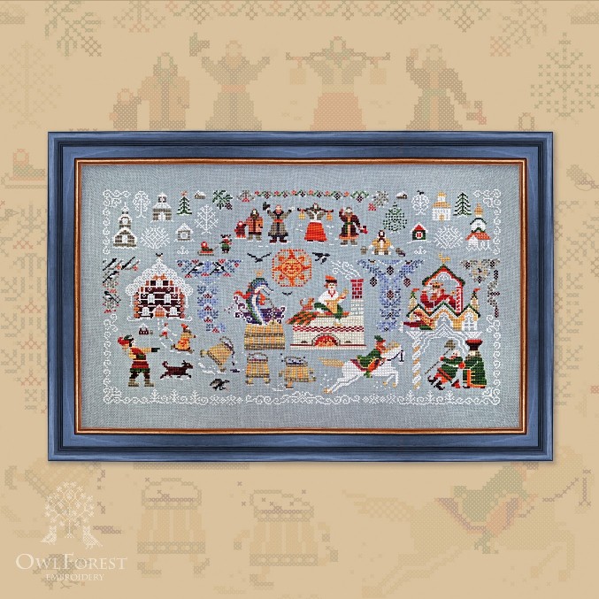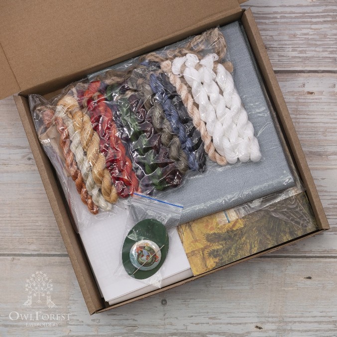 В наборе: основа равномерного переплетения Zweigart Belfast, 32 ct (100% лён), хлопковое мулине ручного окрашиваниямулине DMC ручного окрашивания (13 цв.), цветная символьная схема, игла для вышивания № 26 Prym, магнитный держатель схемы и иглы.