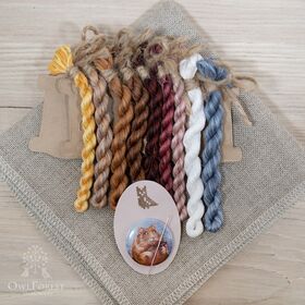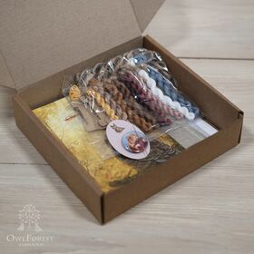 В наборе: основа равномерного переплетения, мулине DMC ручного окрашивания (9 цв.), цветная символьная схема, игла для вышивания № 26 Prym, магнитный держатель схемы и иглы.