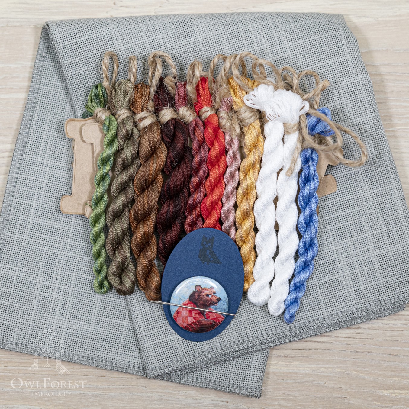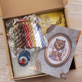 В наборе: основа равномерного переплетения, мулине DMC ручного окрашивания (10 цв.), цветная символьная схема, игла для вышивания № 24 Prym, магнитный держатель схемы и иглы.