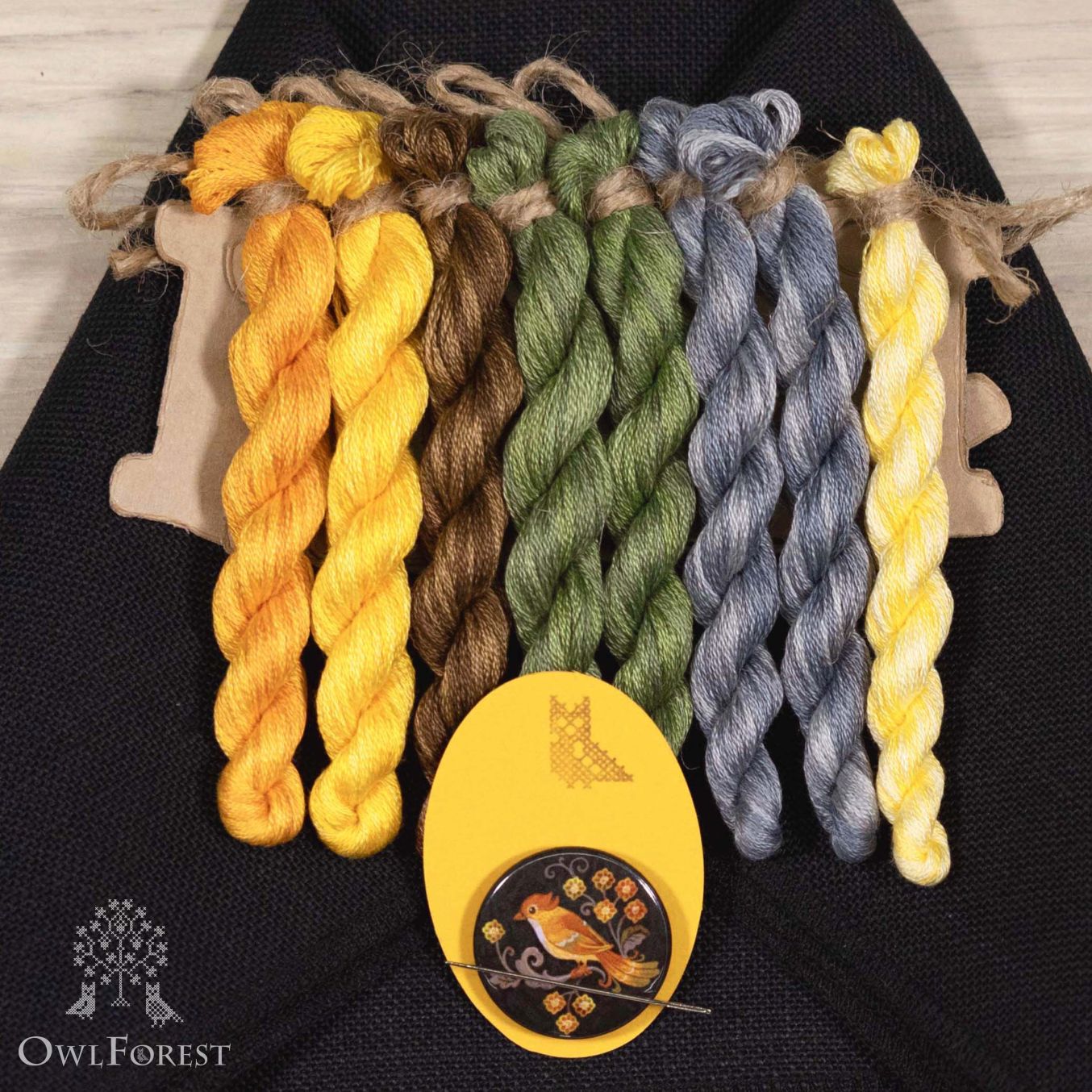 В наборе: Основа равномерного переплетения Zweigart Belfast, 32ct, 100% лён, мулине DMC ручного окрашивания (6 цв.), цветная символьная схема, игла для вышивания № 26 Prym, магнитный держатель схемы и иглы.