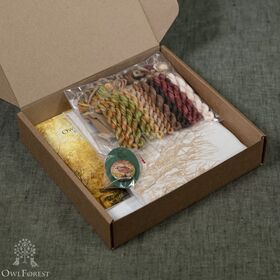 В наборе: Основа равномерного переплетения Ubelhor, Leynen 30 ct, 100% лён, мулине DMC ручного окрашивания (9 цв.), цветная символьная схема, игла для вышивания № 26 Prym, магнитный держатель схемы и иглы.