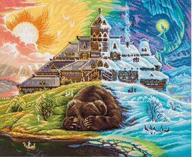 Комментарии к дизайну: По мотивам картины Угланова А.Б. Медведь в славянской культуре - символ добродушия и внутренней силы; он защищает от бед и напастей, наделяет мудростью.