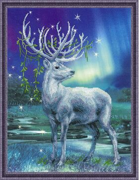 Рисунок фона нанесен на канву. Отдельные элементы вышиваются счетным крестом по схеме с небольшими дополнениями стежком. В работе также используются металлизированная нить. Производитель оставляет за собой право изменять в наборах оттенки материалов.
