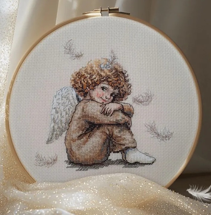 В наборе - хлопковое мулине DMC (хлопок - 100%) на карте, разобранное по цветам, канва Аида 14 Серо-бежевая, символьная схема, игла, инструкция.
