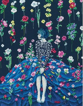 В наборе - аида 14 Zweigart, хлопковое мулине DMC, символьная схема и игла.