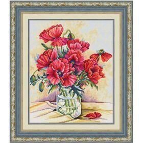 В набор входит - аида 14, хлопковое мулине ПНК им Кирова 50 цв., черно-белая символьная схема и игла.