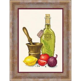 В набор входит - аида 14, хлопковое мулине ПНК им Кирова, цветная символьная схема и игла.