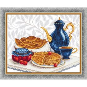 В набор входит - аида 14, хлопковое мулине ПНК им Кирова, цветная символьная схема и игла.