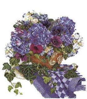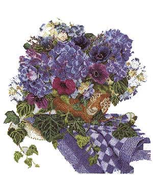 3025 Гортензия и анемоны (на серо-гол. льне)